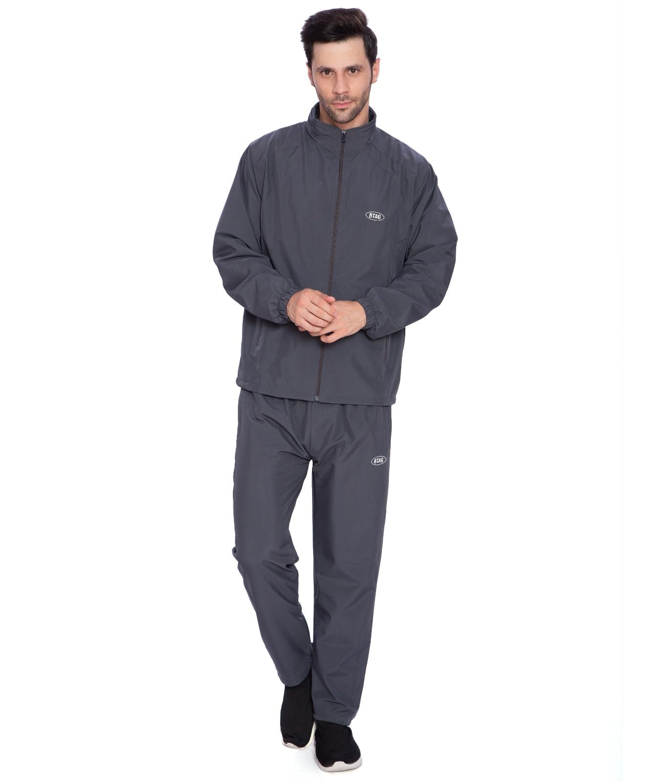 BTfash Men's Solid Polyester Full Zip Sportswear Regular Fit Track Suits Athletic Gym Running Jogging Suit Sets