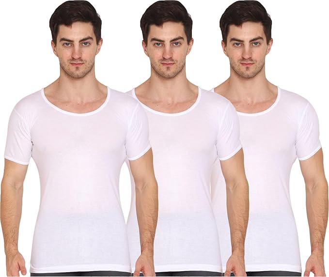 LUX VENUS Men's Round Neck Half Sleeve Cotton Vest Pack of 3