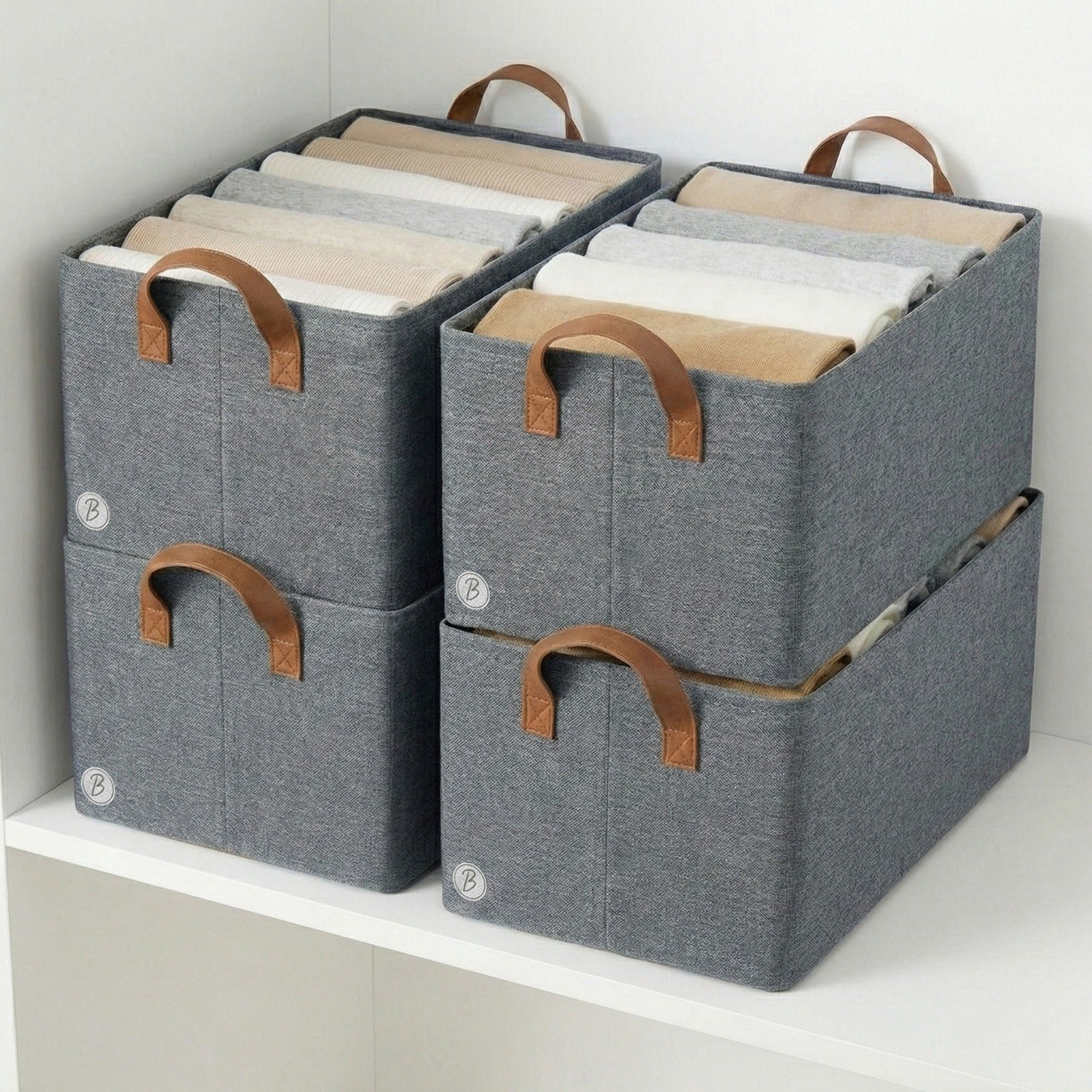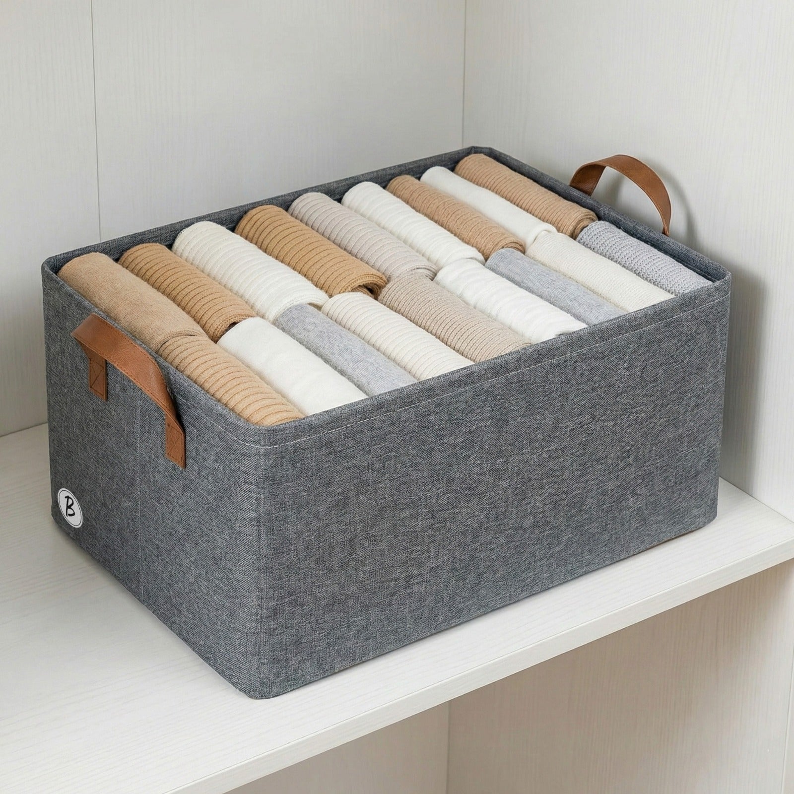 Btag Clothes, Foldable Clothes Storage Baskets for Wardrobe, Books, Saree, Shirts, Stationery Paper, Document Toy,and Blankets Storage Box with Handles | 26 Liter |