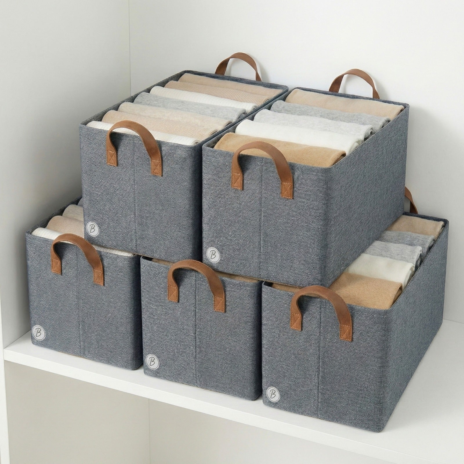 Btag Clothes, Foldable Clothes Storage Baskets for Wardrobe, Books, Saree, Shirts, Stationery Paper, Document Toy,and Blankets Storage Box with Handles|Assorted | 66 Liter |