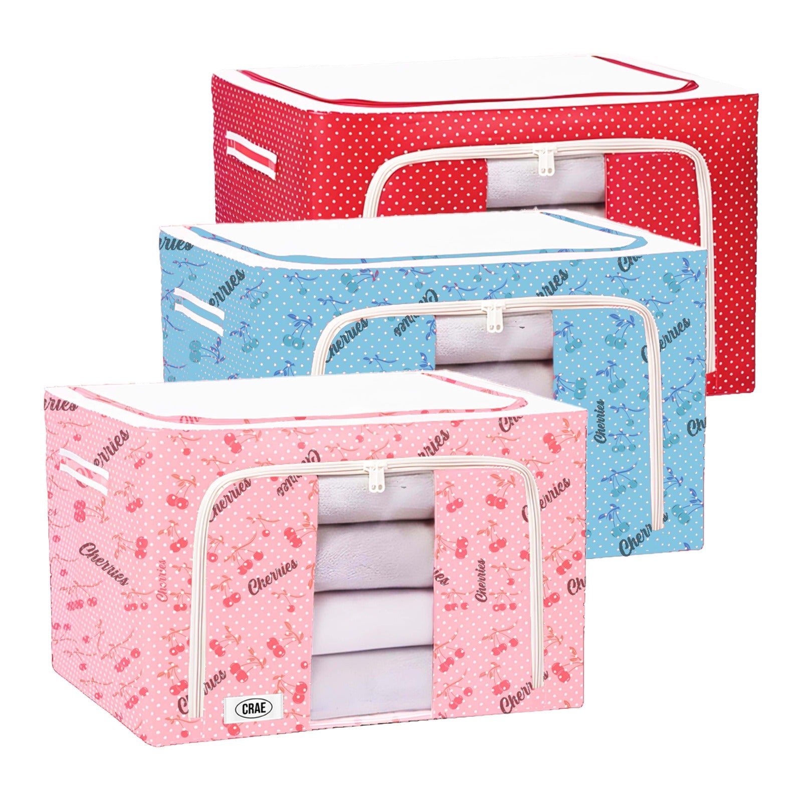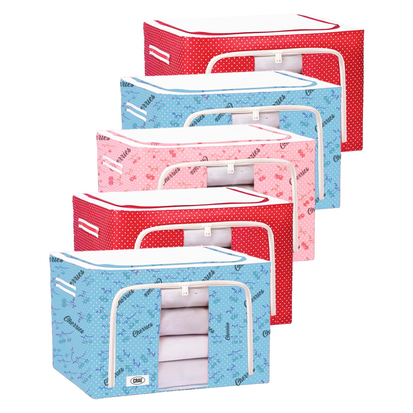 CRAE Clothes, Foldable Clothes Storage Baskets for Wardrobe, Books, Saree, Shirts, Stationery Paper, Document Toy,and Blankets Storage Box with Handles|Printed Assorted | 66 Liter |