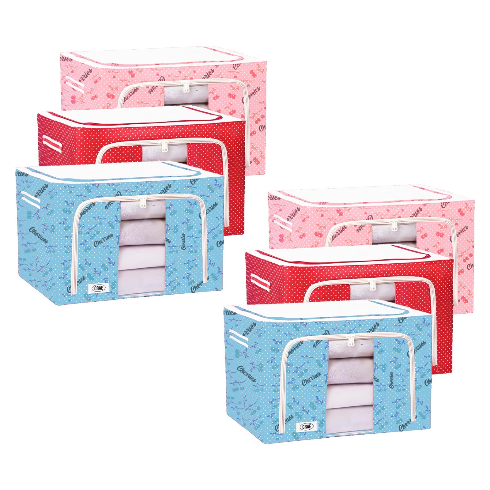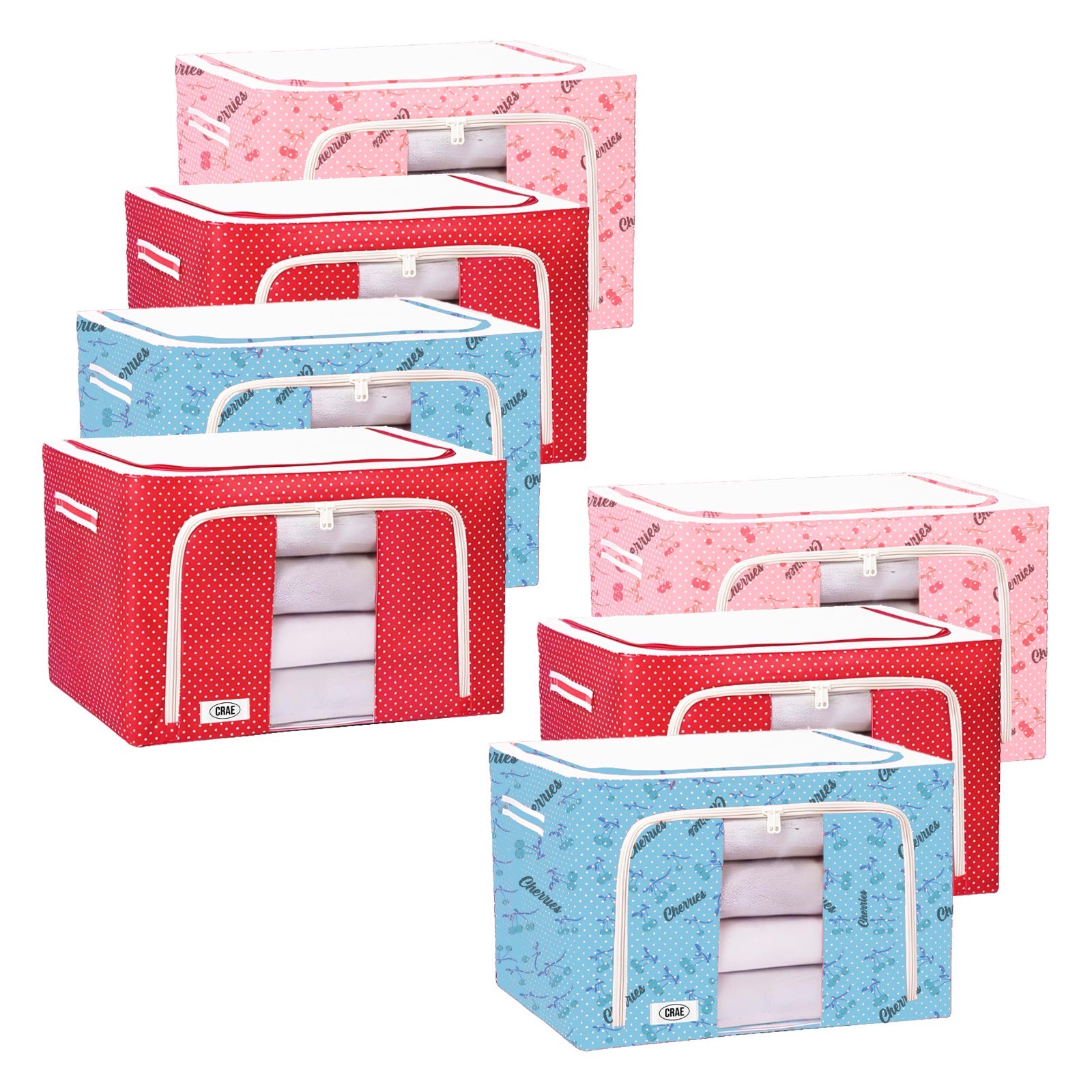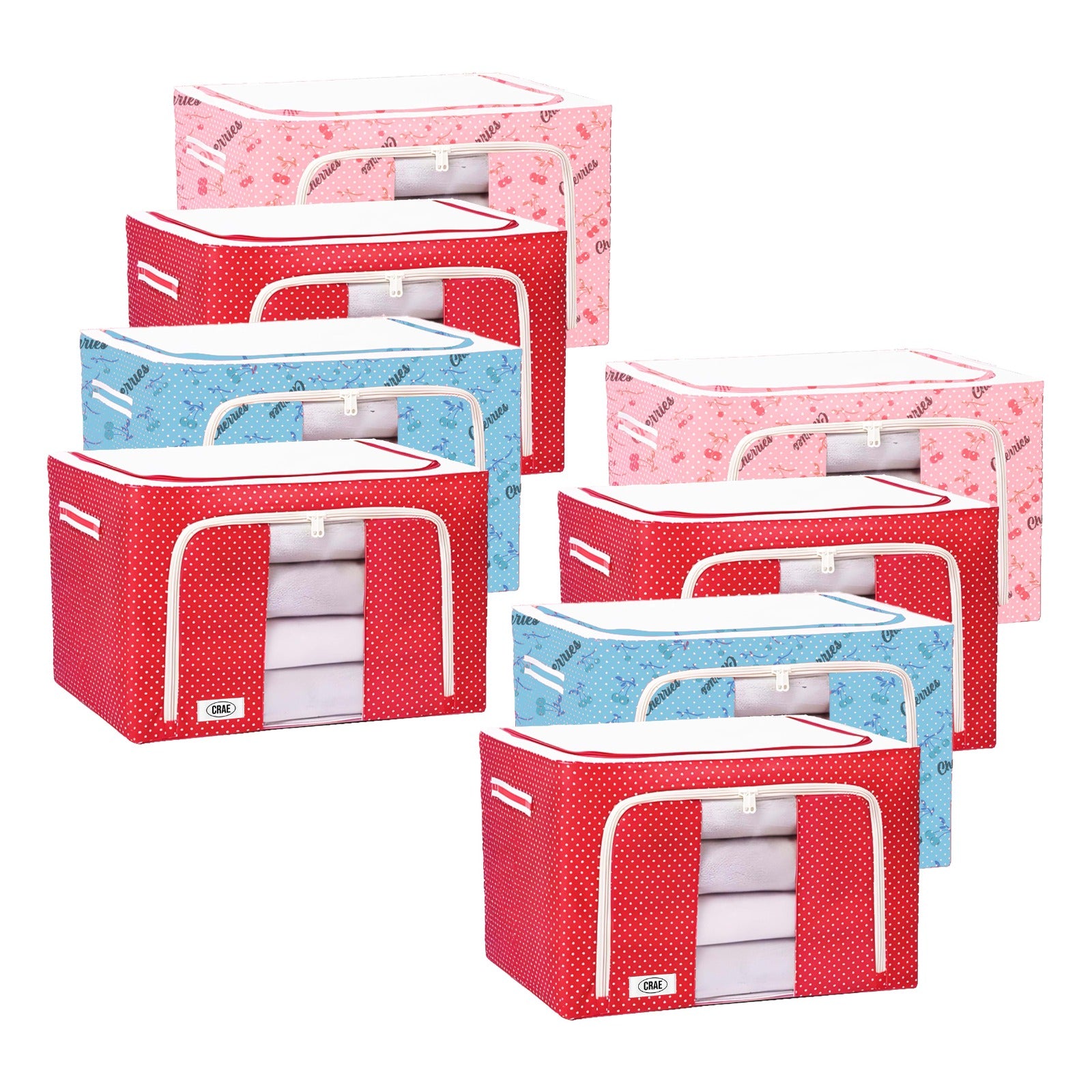 Crae Clothes, Foldable Clothes Storage Baskets for Wardrobe, Books, Saree, Shirts, Stationery Paper, Document Toy,and Blankets Storage Box with Handles|Assorted | 66 Liter |