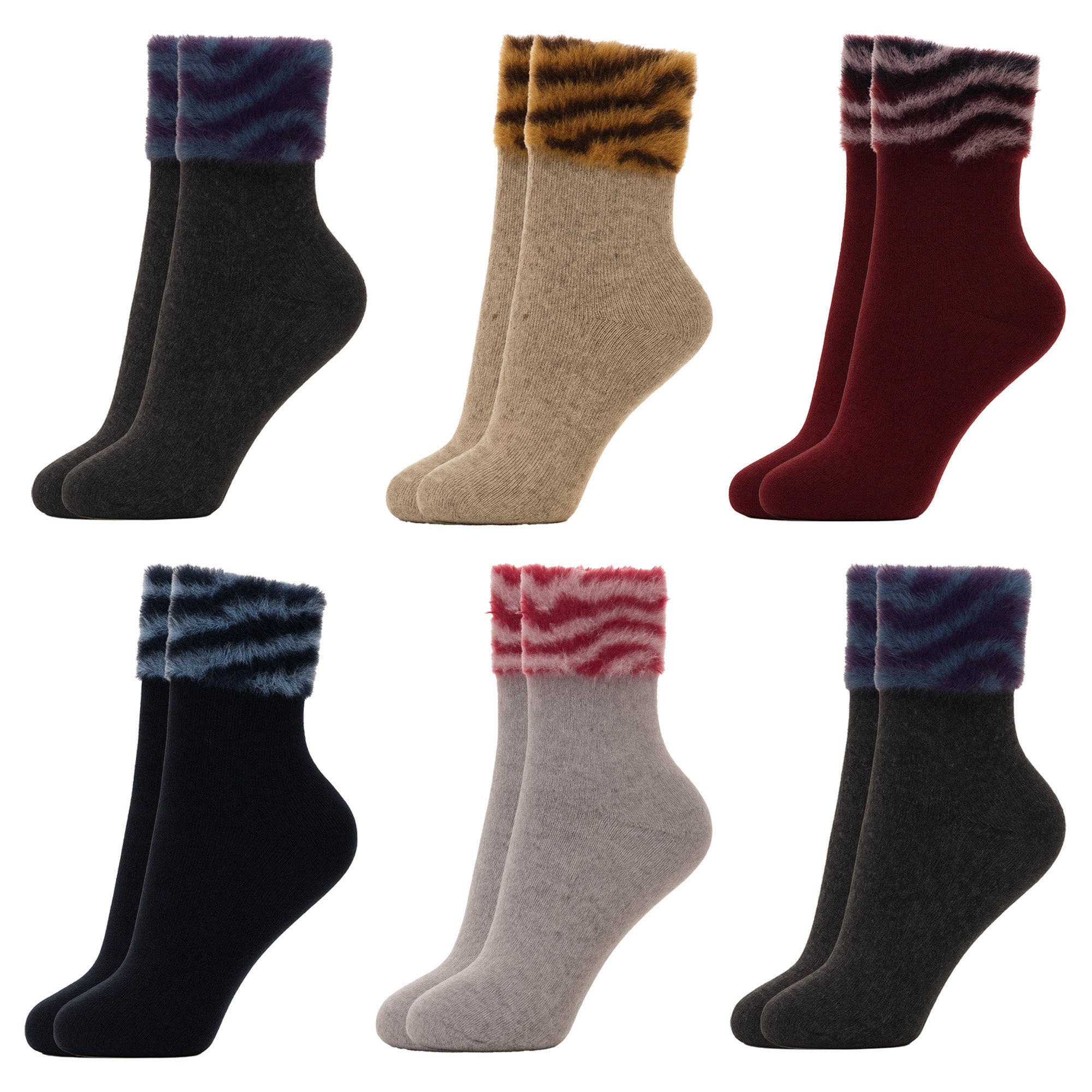 Btag Warm Woolen Fur Socks For Women For Winters WithOut Thumb | Cozy Winter Essentials | Made with Thermal Control Technology & Extra Cushioning For a Warmth & Cozy Feel (Assorted_Free Size_PO6)