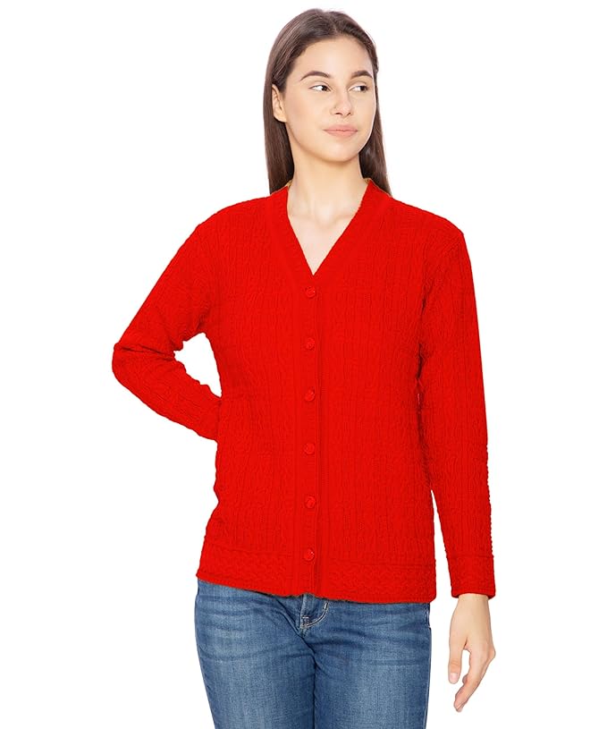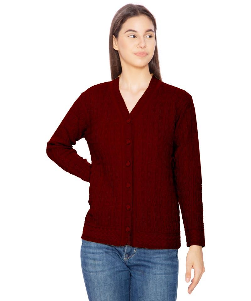 Btag Women Woolen V-Neck Winter Wear Pure Wool Sweater Cardigan | Pack of 1