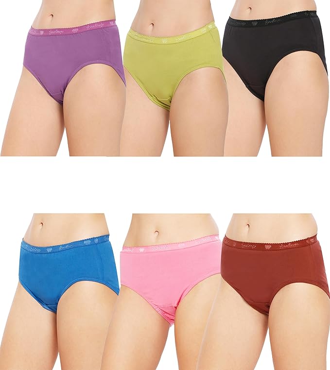 VIP Feelings Amelie Women's Cotton Inner Elastic Hipster Panty(Pack of 6)