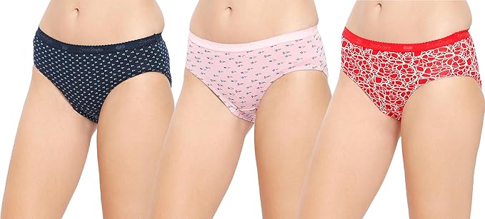 VIP Feelings Amelie Women's Cotton Inner Elastic Hipster Panty(Pack of 3) Printed