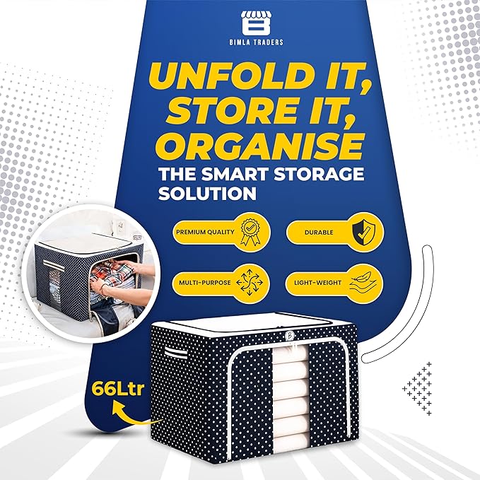 Keep your home neat, tidy, and well-organized with the Btag Foldable Storage Box. Designed with a 66-liter capacity, it’s perfect for storing clothes, sarees, shirts, books, stationery, documents, toys, and blankets. The sturdy handles make it easy to carry, while its foldable design saves space when not in use. Ideal for wardrobes, shelves, and bedrooms – a practical solution for clutter-free living.