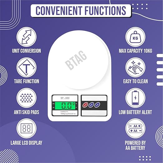 Make every recipe a success, monitor your intake for healthier living, and elevate your cooking game with the Btag Digital Kitchen Food Weighing Scale – the ultimate kitchen essential for those seeking precision, convenience, and a balanced diet.