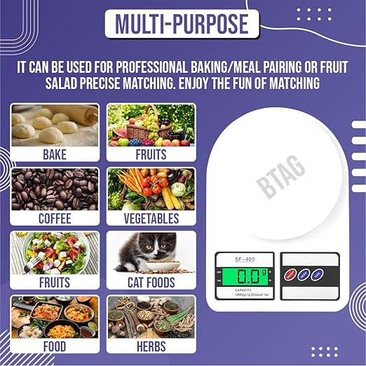 Btag Digital Kitchen Food Weighing Scale – Your perfect partner for a healthier lifestyle, precision baking, and mindful cooking! Designed to make your kitchen experience more convenient and accurate, this digital scale helps you manage portion sizes, track nutrition, and support a balanced diet with ease.