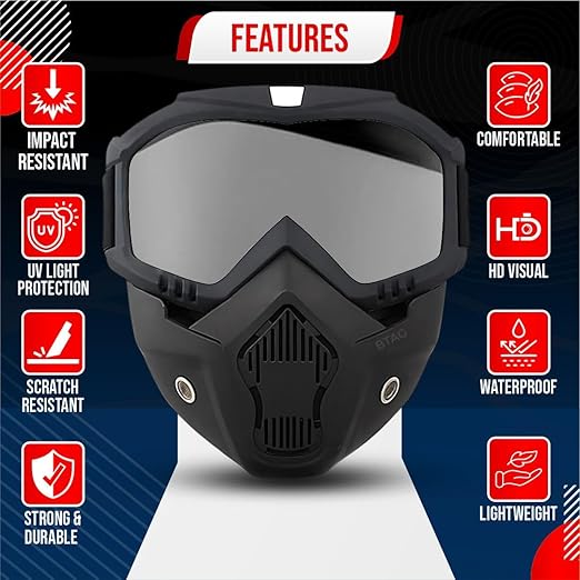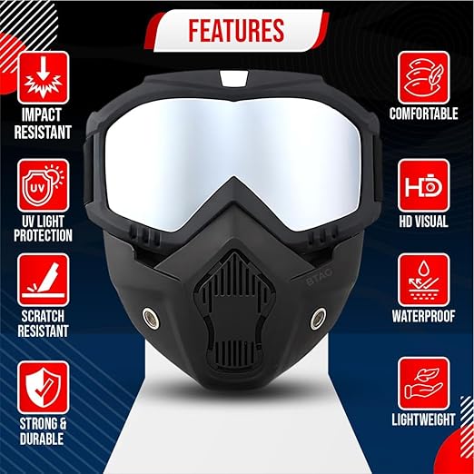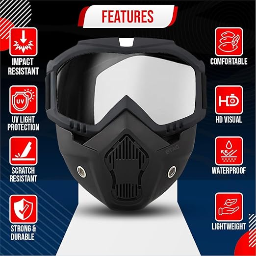 Btag Goggle Mask Anti Scratch UV Protective Open Face & Eyewear Windproof Unisex