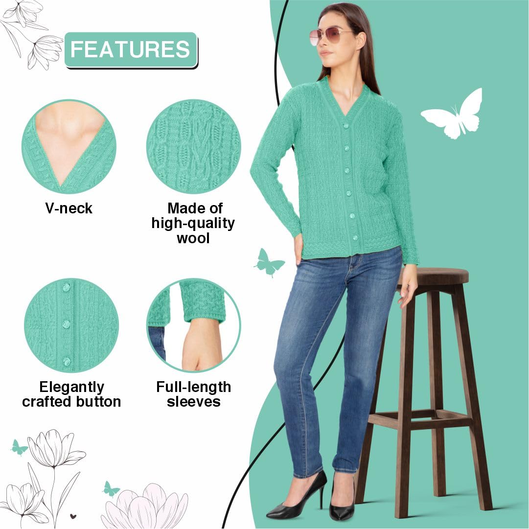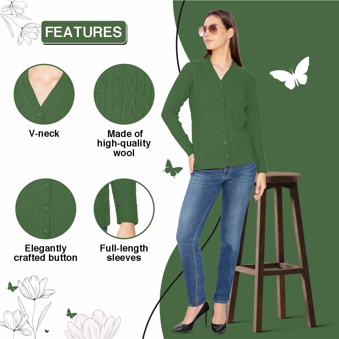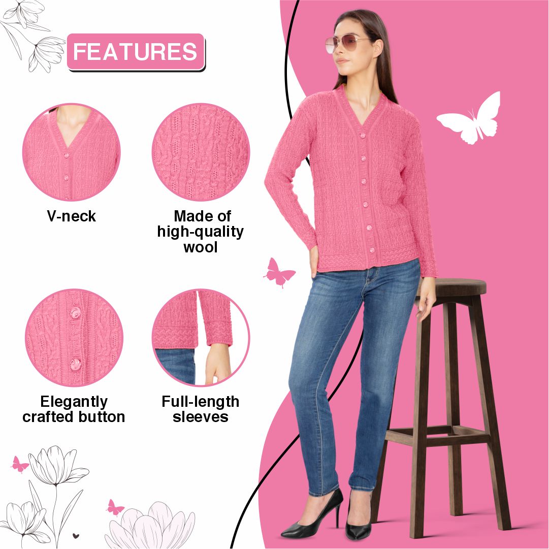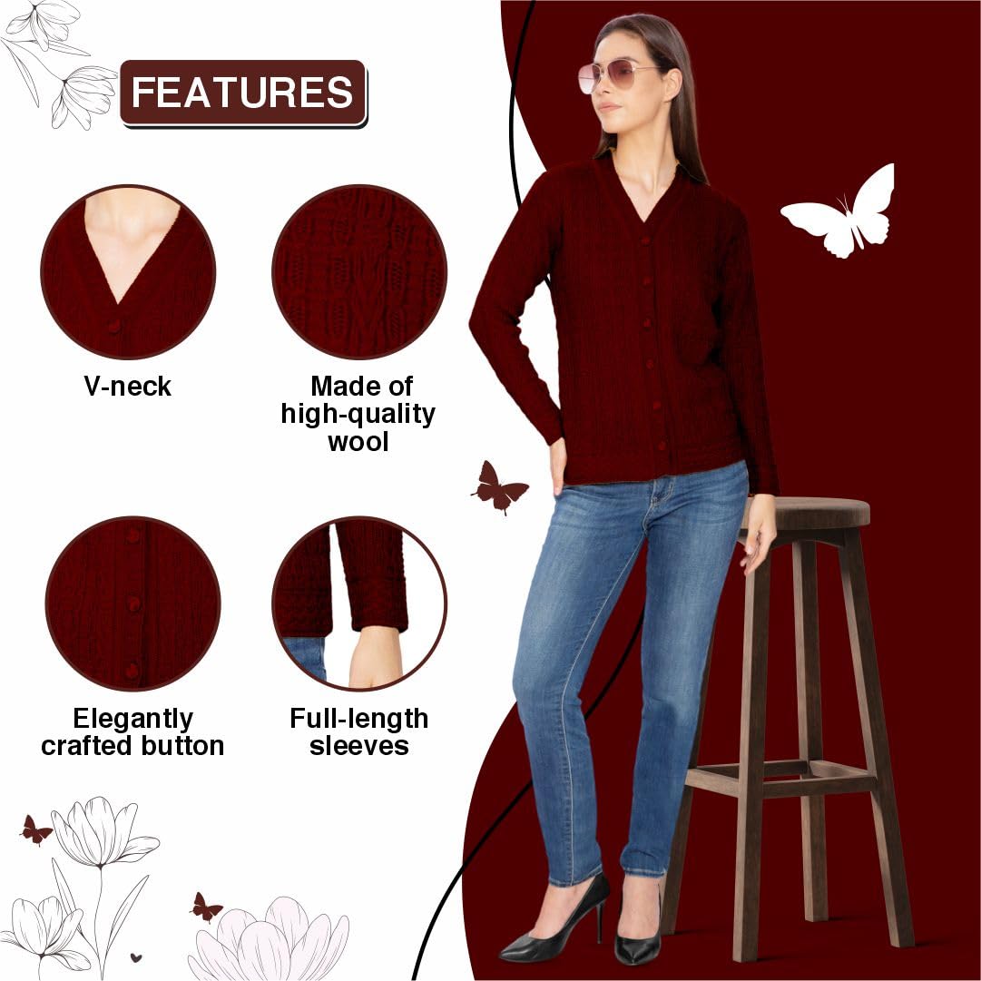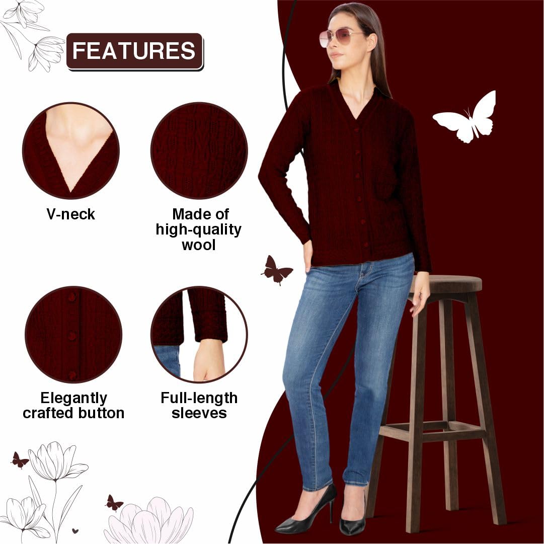 Btag Women Woolen V-Neck Winter Wear Pure Wool Sweater Cardigan | Pack of 1