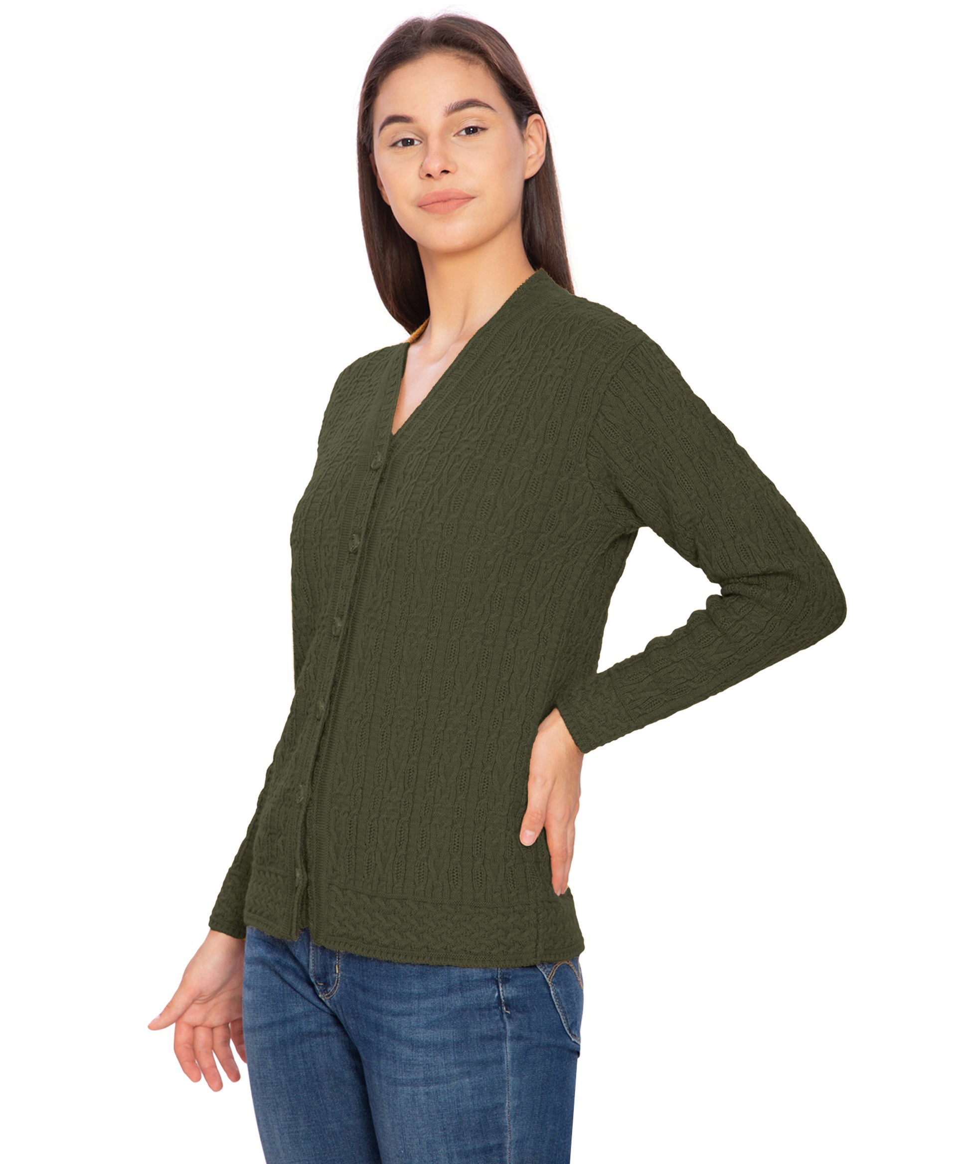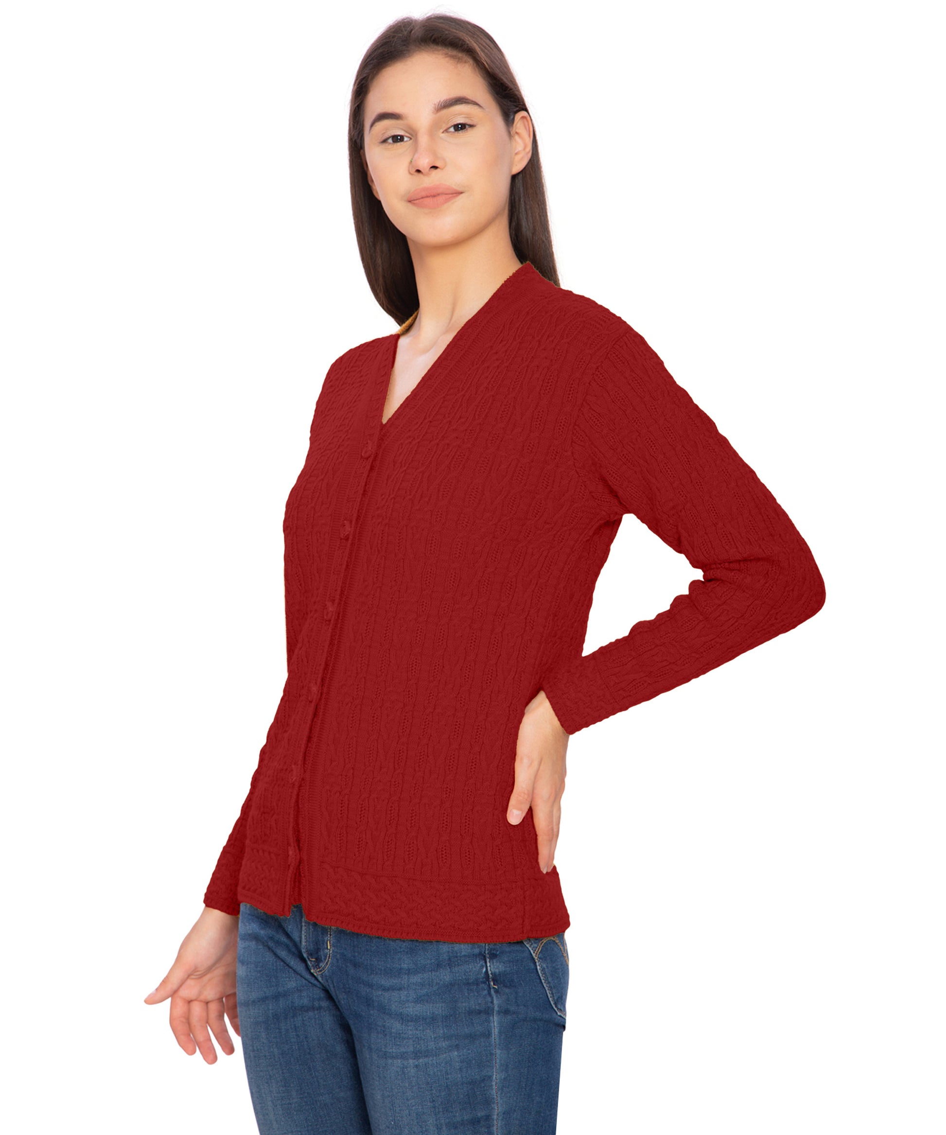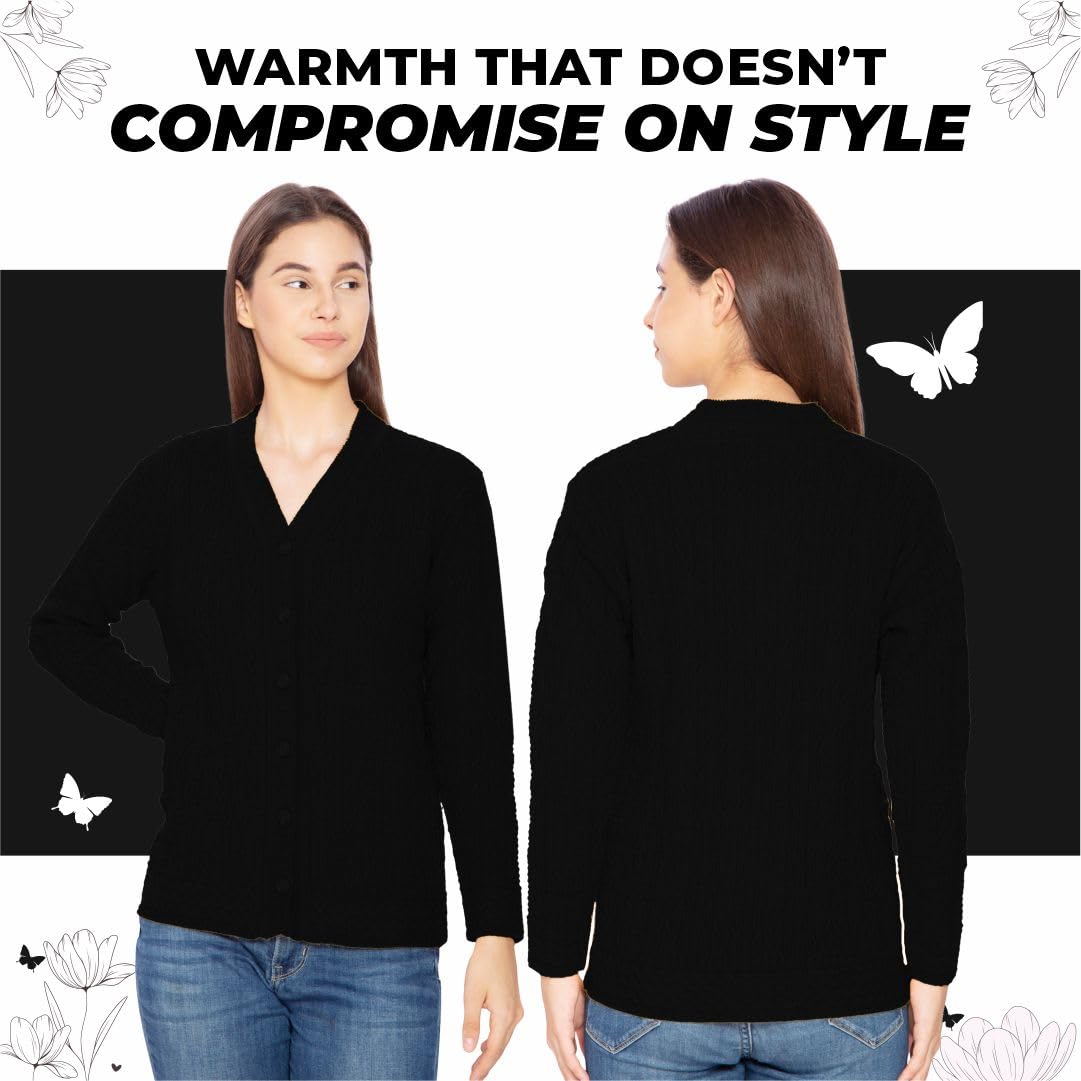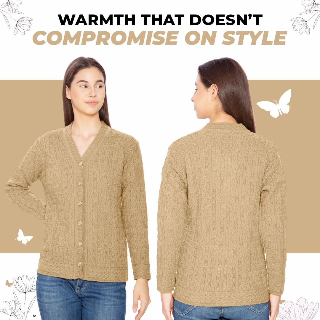 Btag Women Woolen V-Neck Winter Wear Pure Wool Sweater Cardigan | Pack of 1