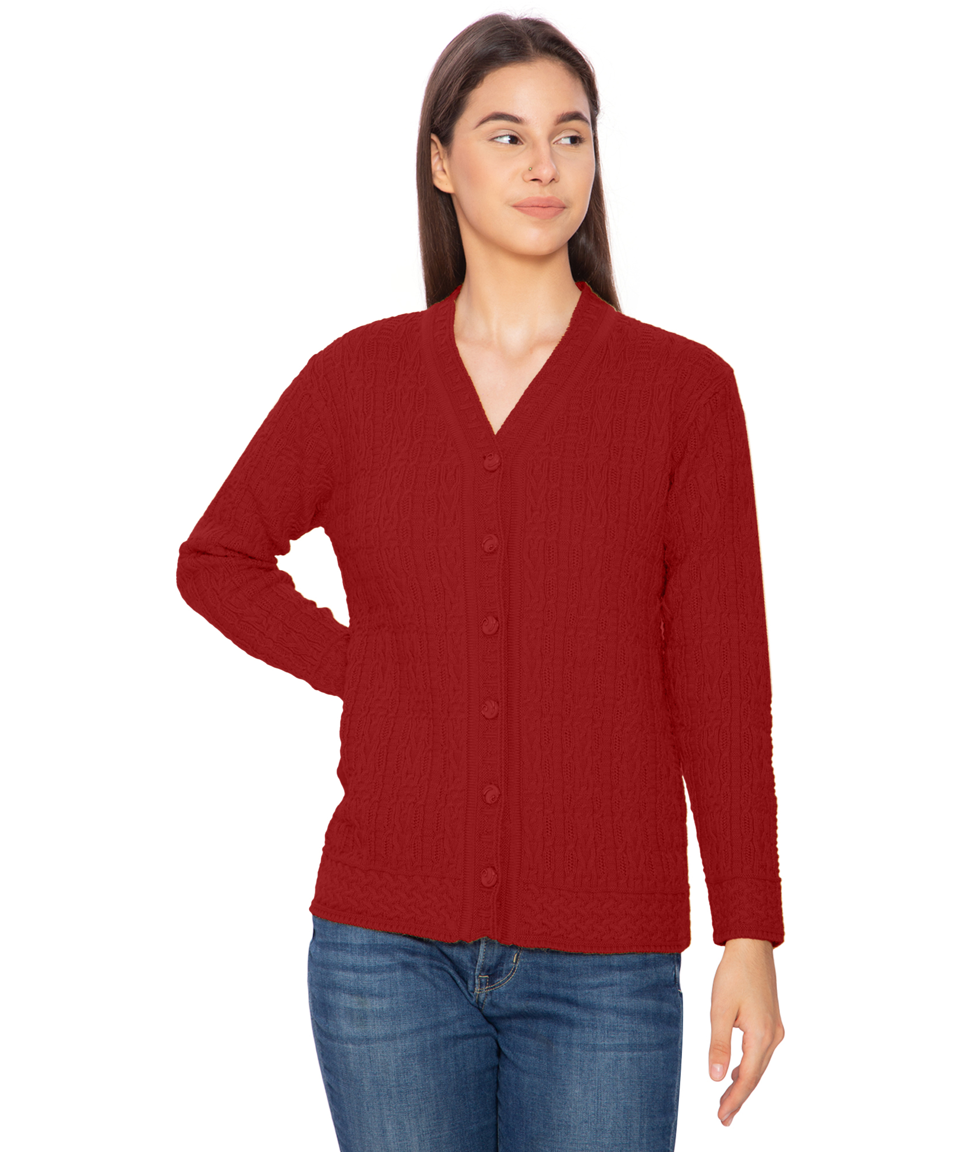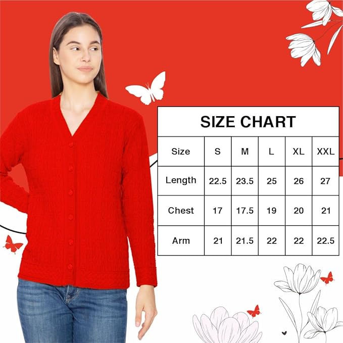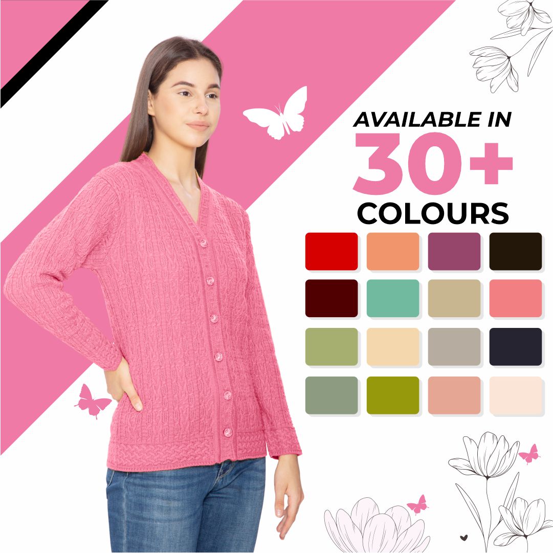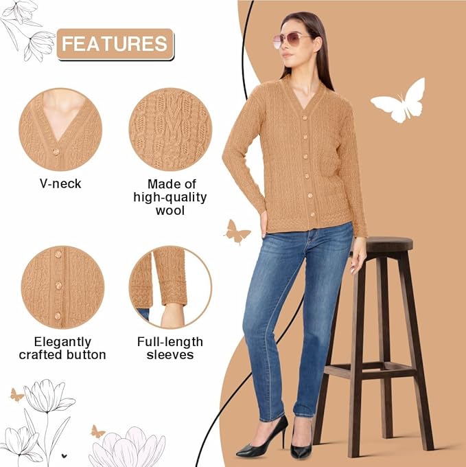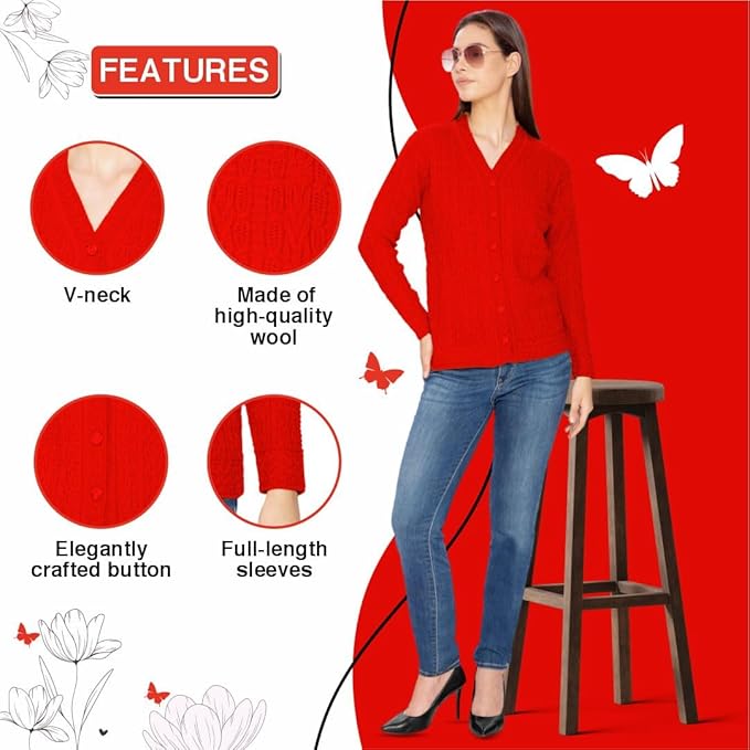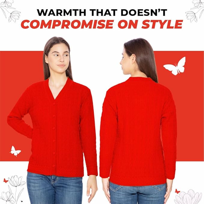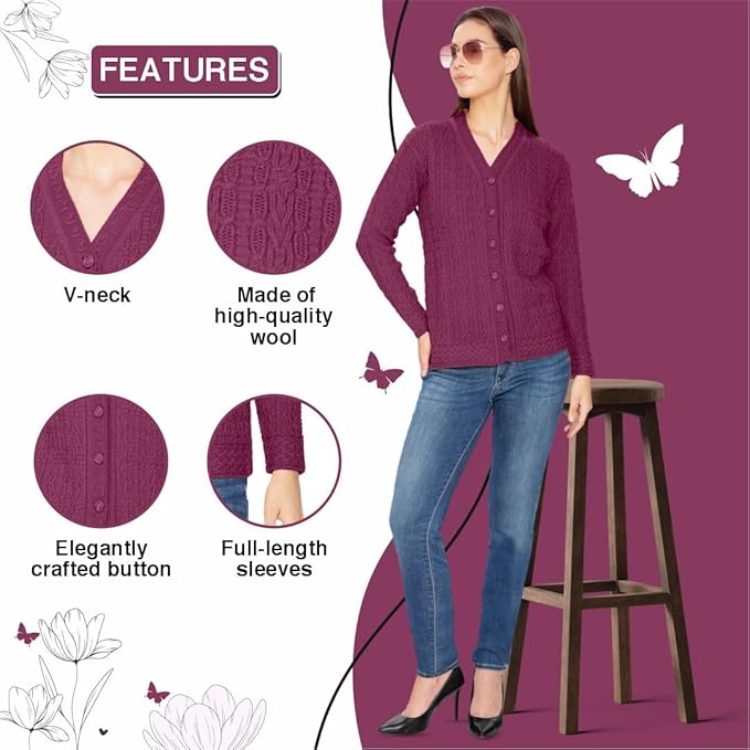 Stay cozy and stylish this winter with the Btag Women Woolen V-Neck Winter Wear Pure Wool Sweater Cardigan. Designed with premium quality pure wool, this cardigan offers superior warmth and comfort, making it an ideal choice for chilly days. Its classic V-neck design and button-down style add elegance, while the soft texture ensures all-day comfort. Perfect for casual outings, office wear, or layering during cold weather, this cardigan combines functionality with timeless fashion.
