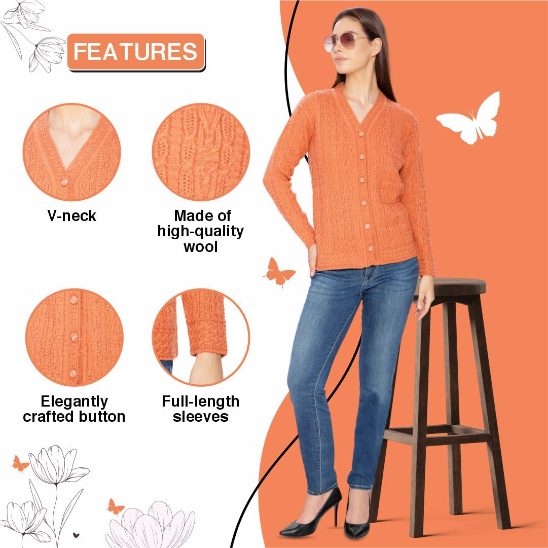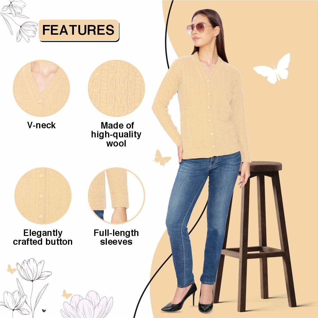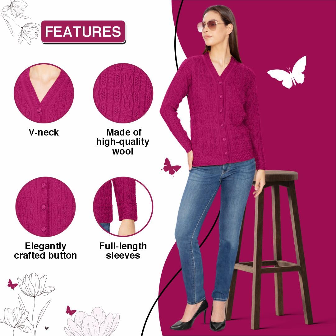 Btag Women Woolen V-Neck Winter Wear Pure Wool Sweater Cardigan | Pack of 1