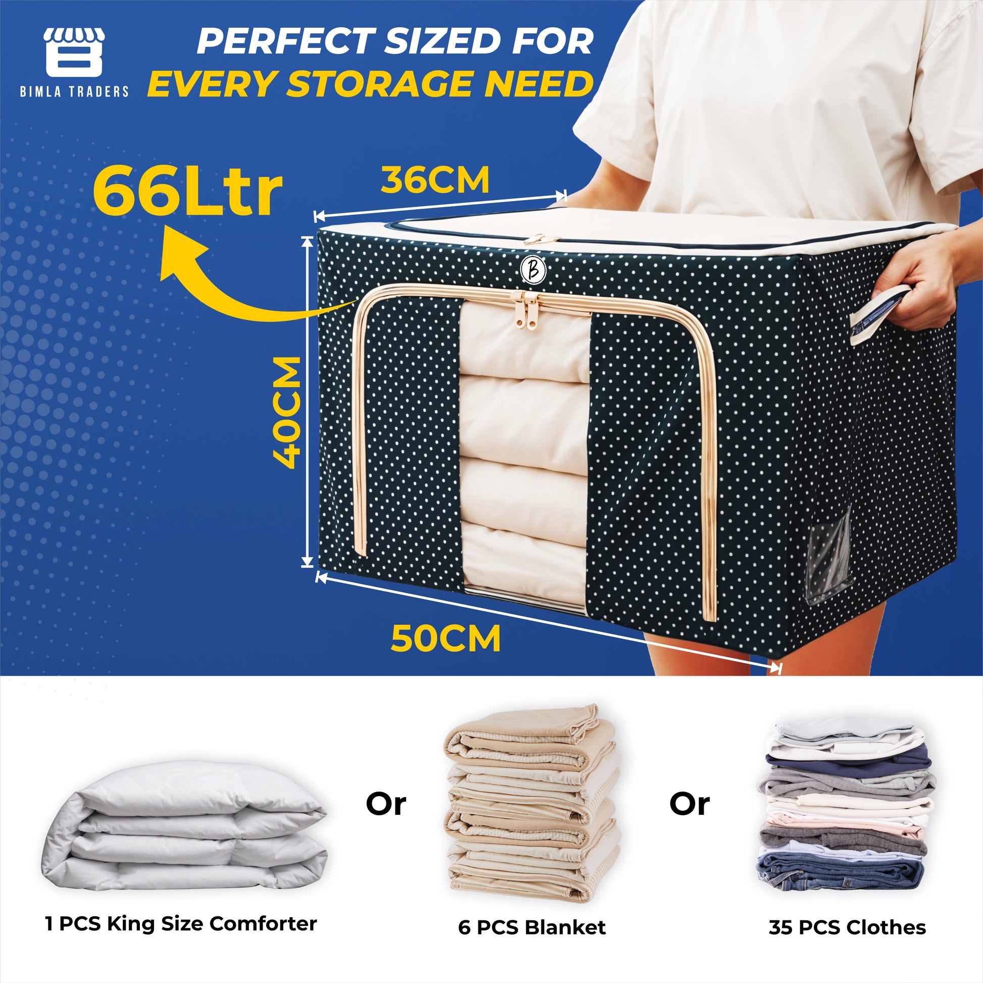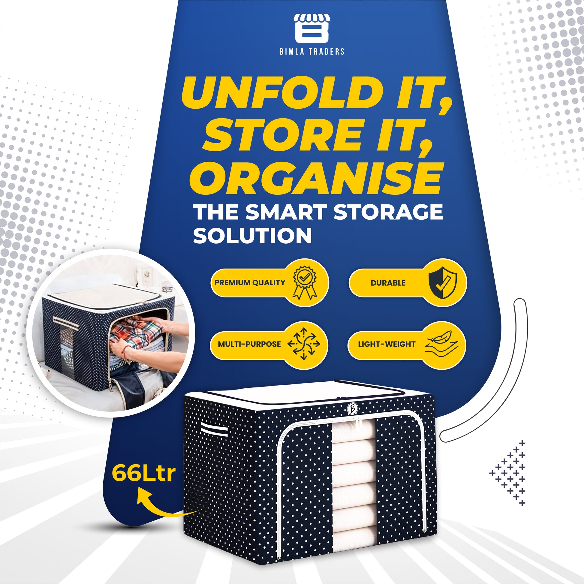 - 👜Durable Construction: Crafted from high-quality materials, this storage container is built to withstand regular use and protect your belongings, Attractive polka-dot pattern in navy and white adds a modern touch to your storage solutions.