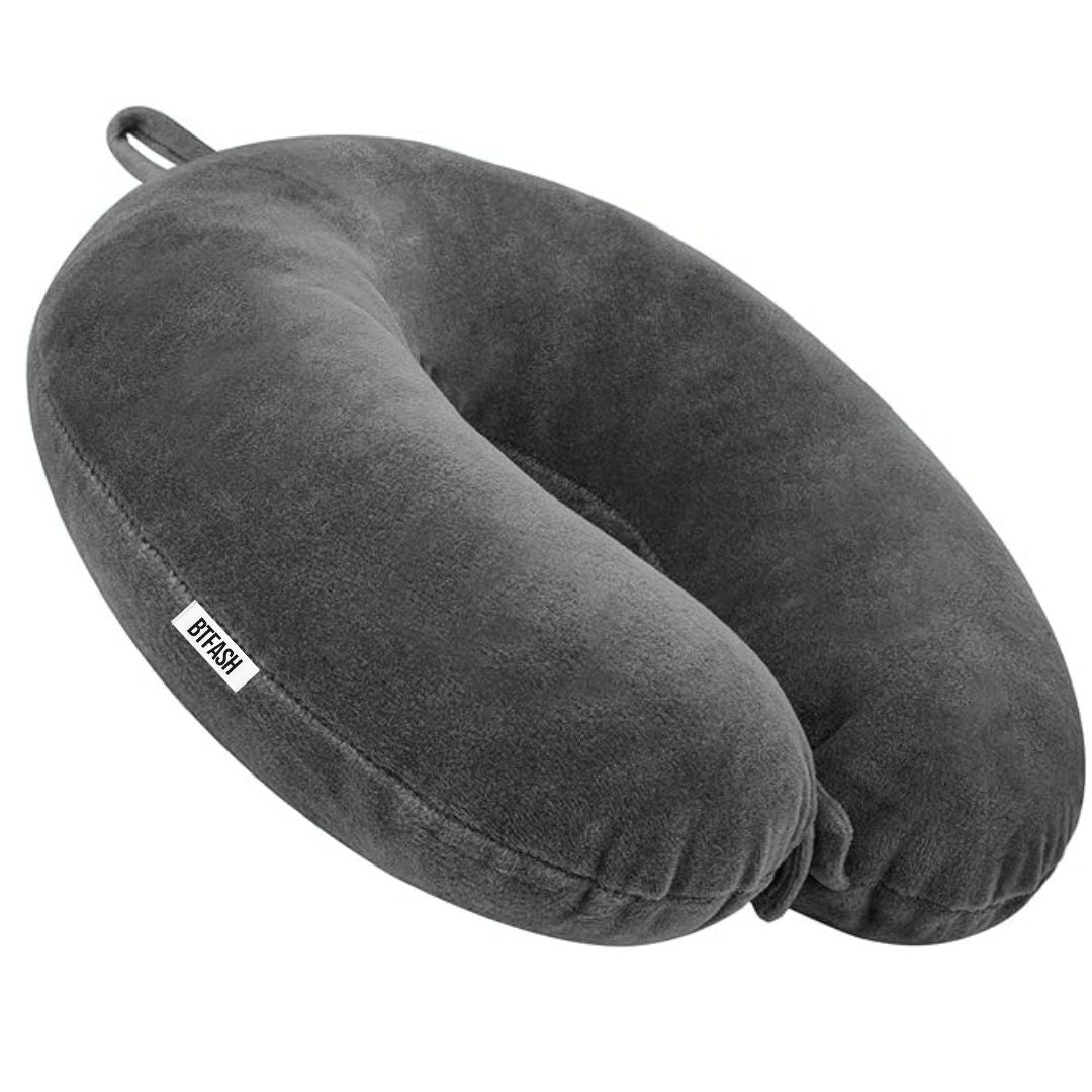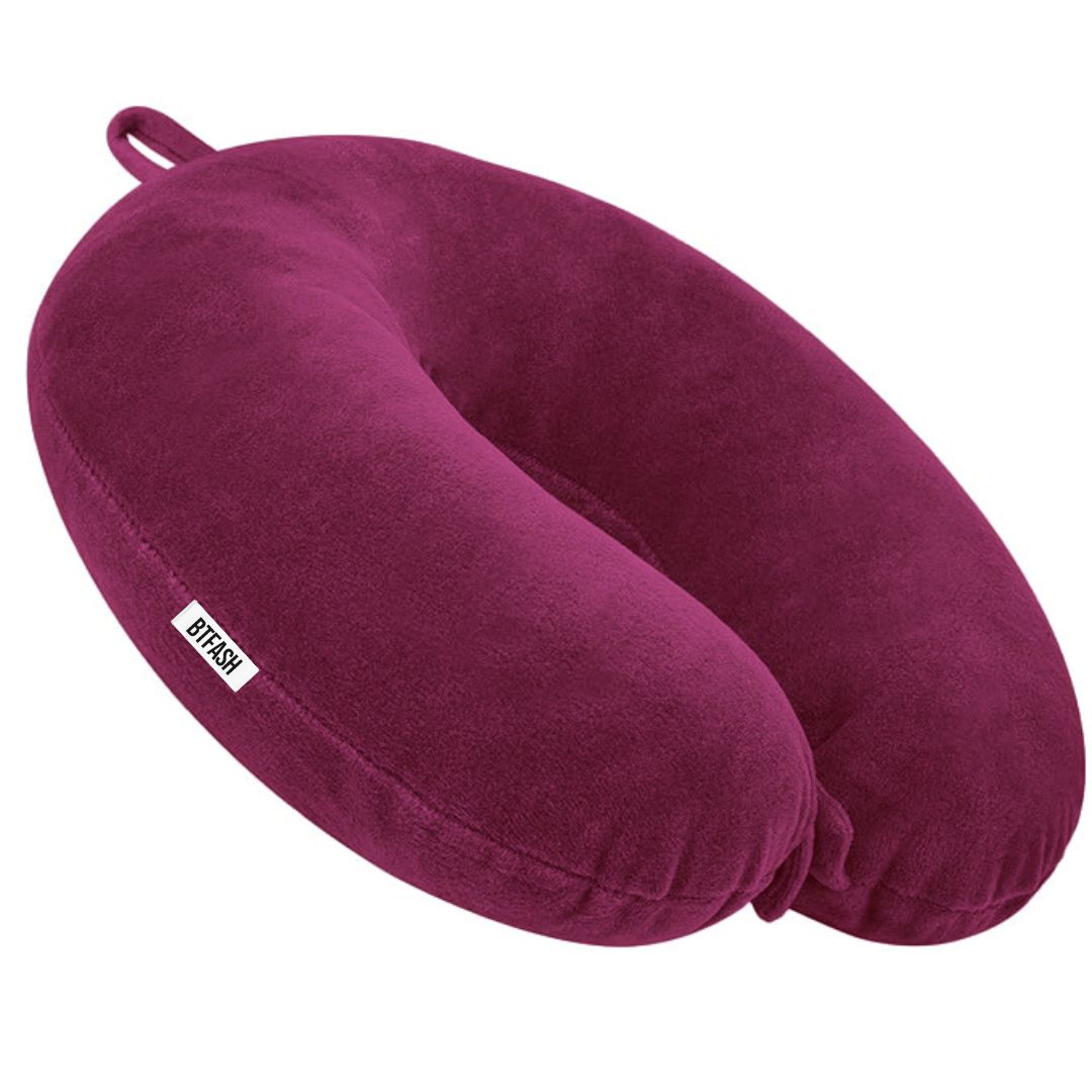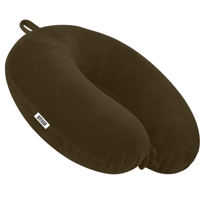 BTfash Travel Neck Pillow for Men & Women | Soft Fibre Cushion for Flight, Car & Train | Soft Velvet Fabric with Attachable Snap Strap | Cervical Support for Neck Pain Relief. Pack of 1