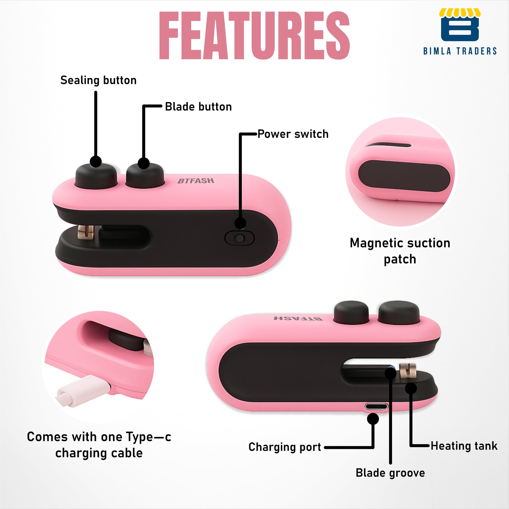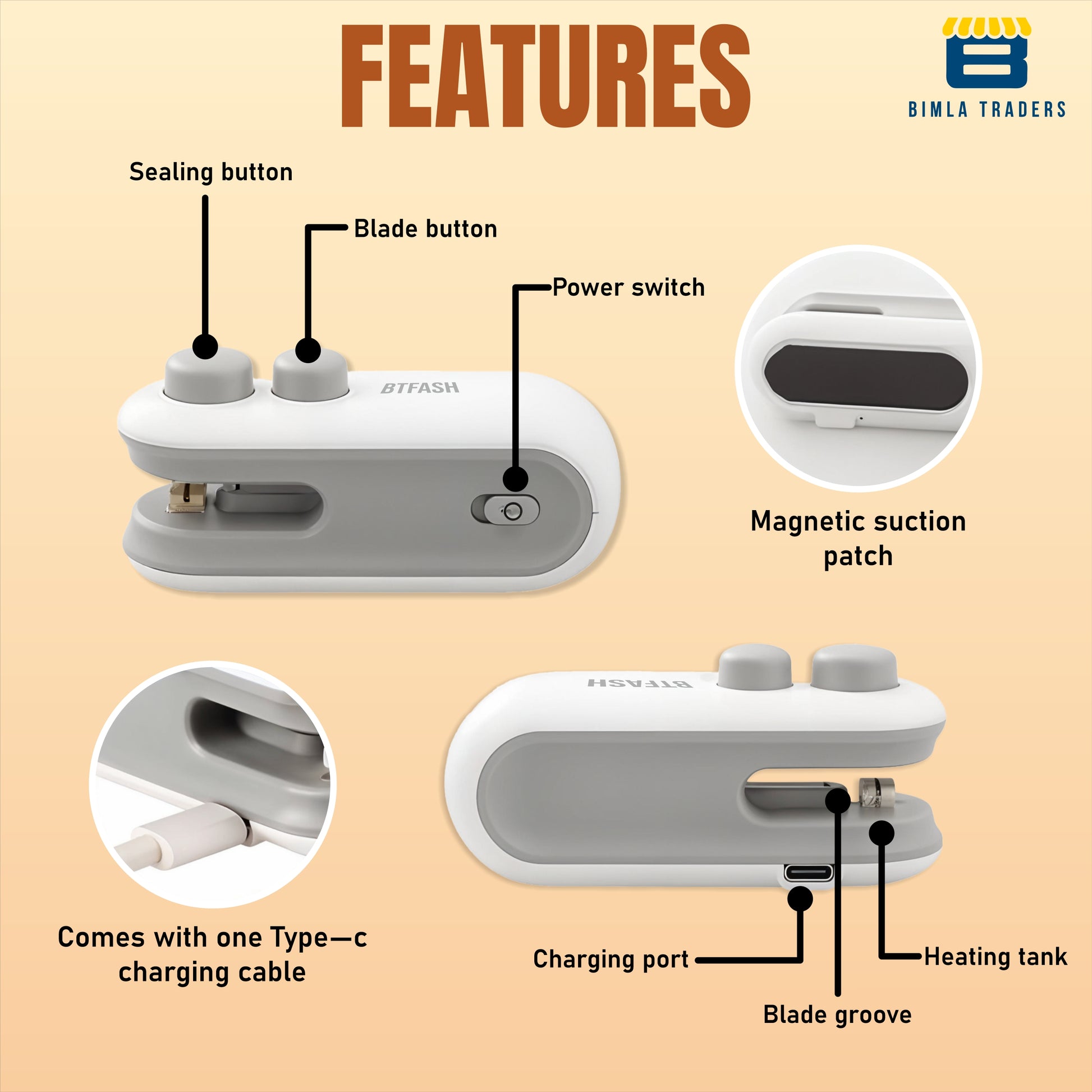 Quick Heat Sealing – Reseals snack bags and plastic wraps in seconds, locking in freshness.
