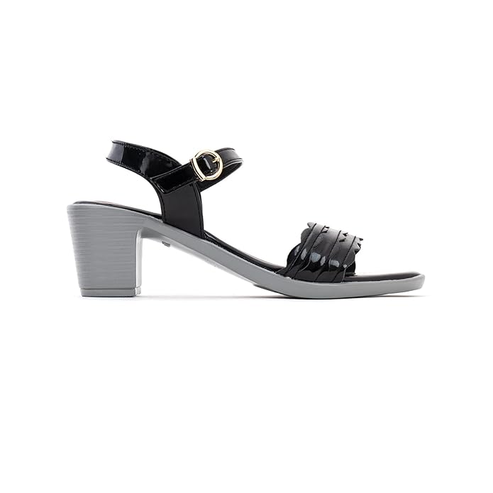 CLEO by Khadim's Synthetic Leather PVC Sole Black Casual Heels for Women
