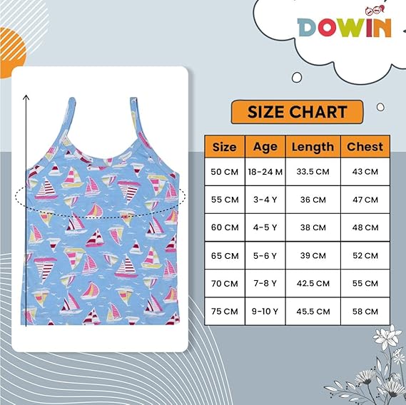 The Dowin Girl's Cotton Slip is crafted from premium-quality, breathable cotton fabric, designed to provide ultimate comfort throughout the day. Its lightweight, soft texture ensures a smooth feel against the skin, making it perfect for wearing under dresses, frocks, or school uniforms. The slip features adjustable straps for a customized fit, ensuring ease of movement. Available in classic shades like white and beige, it offers a neat and polished look underneath any outfit. Easy to care for and durable, this cotton slip is an essential addition to any girl's wardrobe for all-day wear.