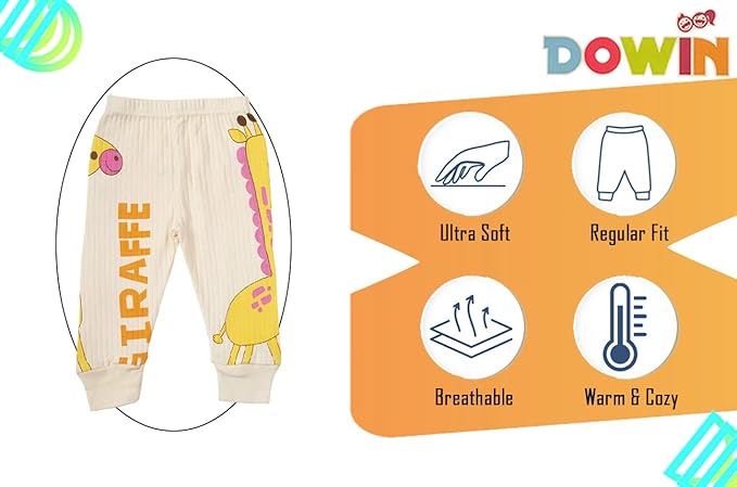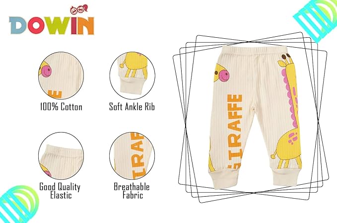 These pajamas are perfect for playtime, naptime, or bedtime. The Dowin Baby Cotton Pajama Bottoms combine comfort, quality, and affordability, ensuring your baby stays cozy all day and night.