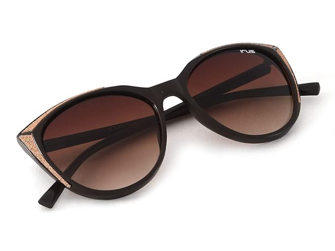 IRUS 100% UV protected sunglasses for Women | Size- Medium | Shape- Cat Eye | Model- IRS1094C2SG (Black)