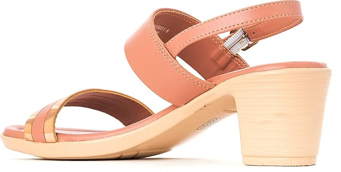 Introducing Khadim's Fashionable Heels Sandal – the perfect blend of style and comfort for women. These sandals feature a chic golden strap that adds a touch of elegance to any outfit, making them ideal for casual occasions or a night out. The pink base gives the footwear a feminine and trendy look, while the heels provide just the right amount of lift to keep you comfortable and confident throughout the day.
