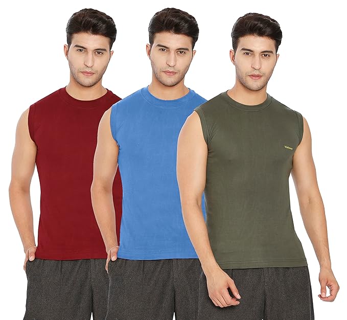 LUX VENUS Men's Round Neck Half Sleeve Cotton Vest Pack of 3