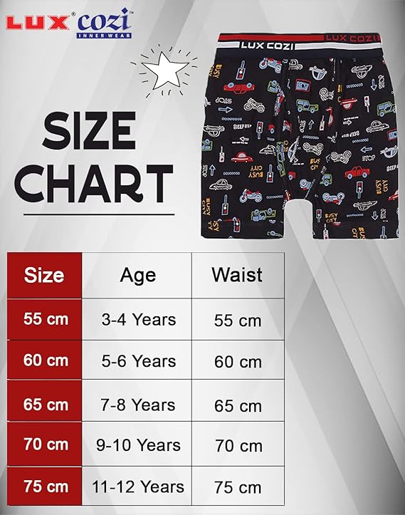 Lux Cozi Boys Outer Elastic Trunks- Assorted Colours