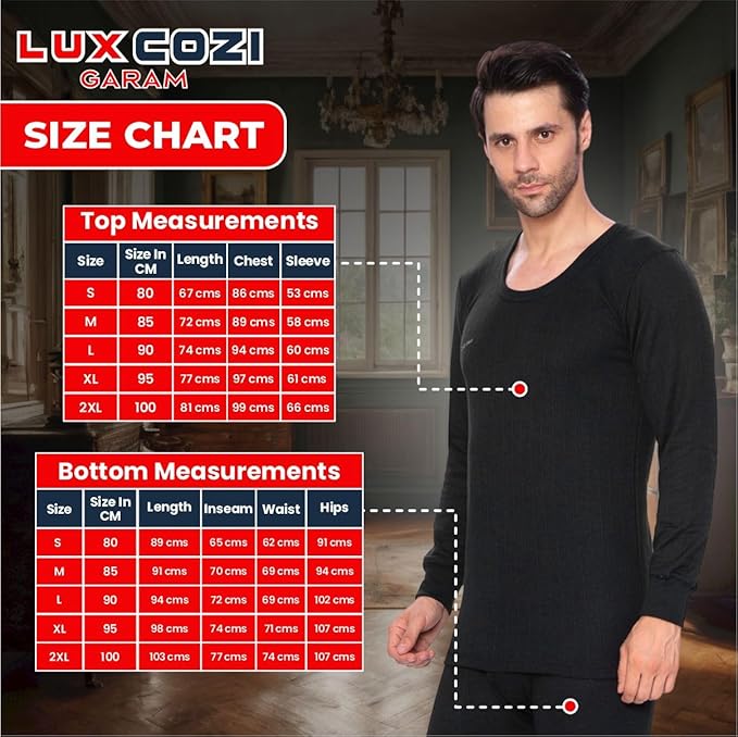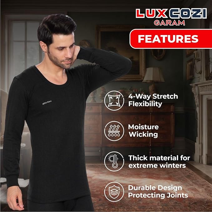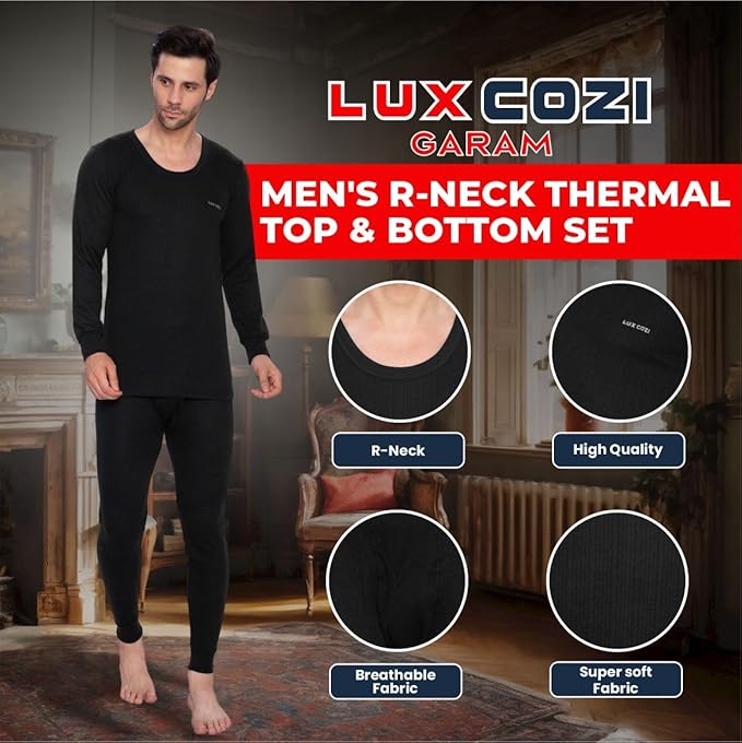 Lux Cozi Men's Round Neck Full Sleeve Garam Thermal Top & Bottom Set