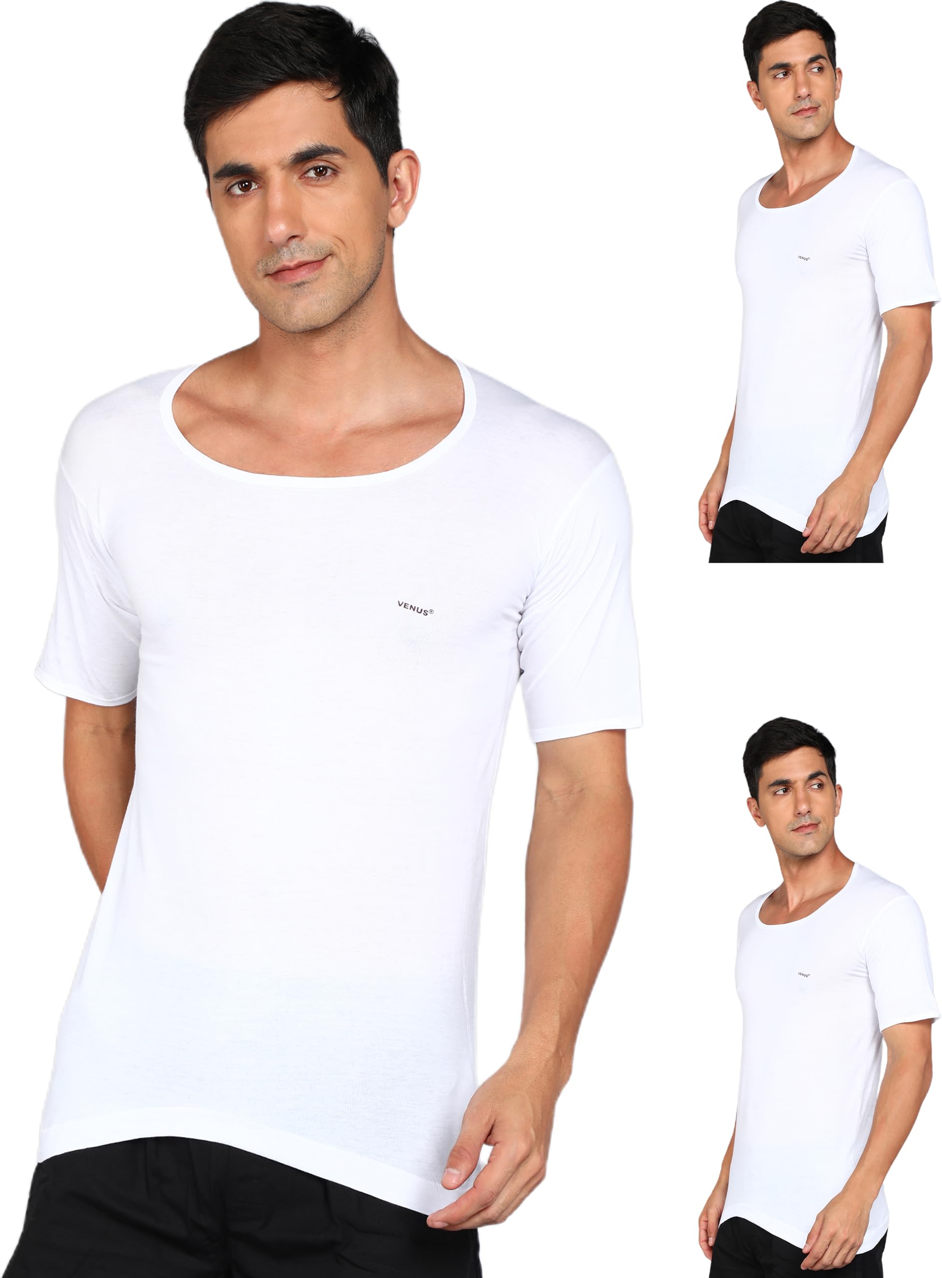 LUX VENUS Men's Round Neck Half Sleeve Cotton Vest Pack of 3