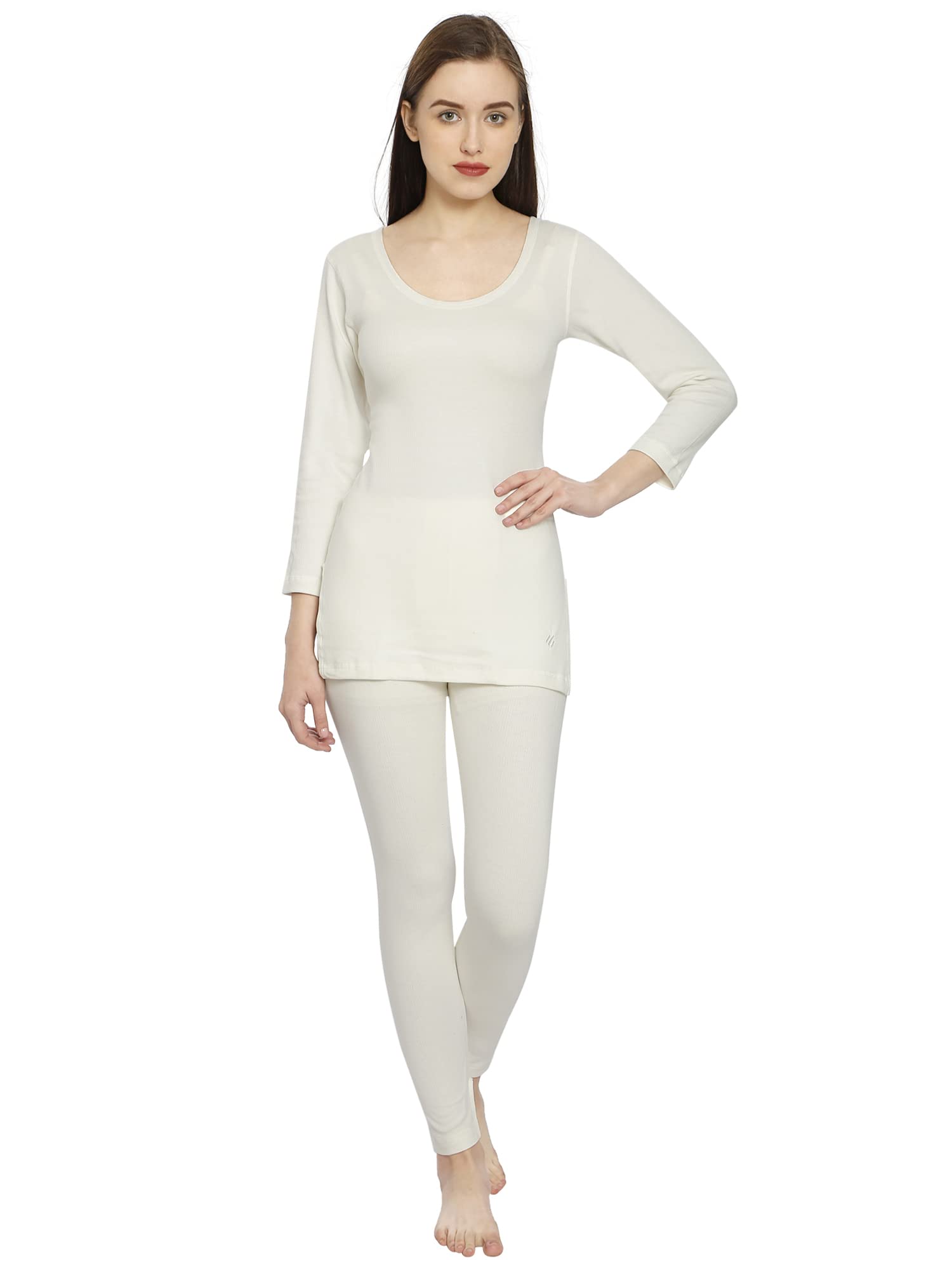 Whether you're relaxing at home or layering for outdoor adventures, the ONN Women's Cotton 3/4th Sleeve U-Neck Thermal Top/Bottom Set is the perfect companion for staying warm and stylish. Elevate your winter essentials with this functional and fashionable thermal wear.