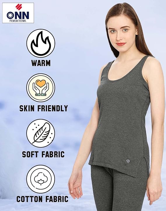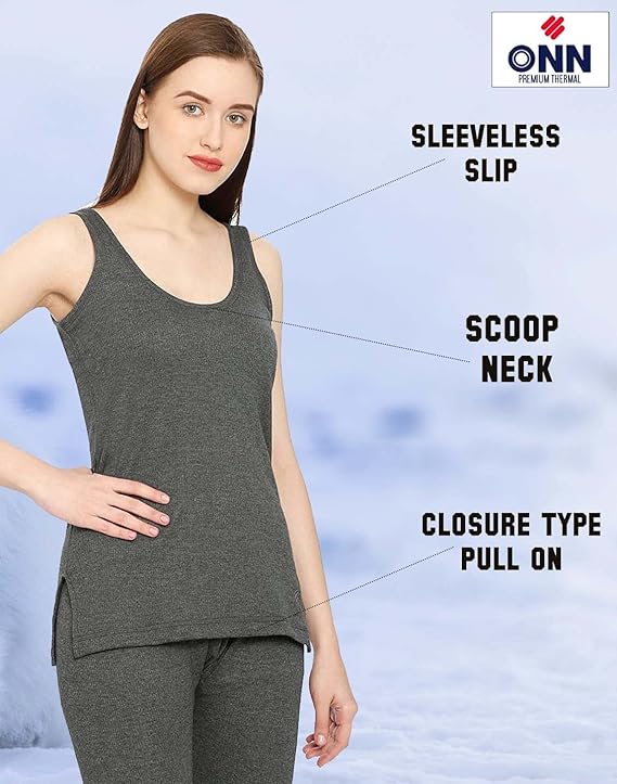 The ONN Women's Cotton Sleeveless Slip Thermal Top is designed to provide both comfort and warmth, making it an essential layer for colder months. Made from soft, breathable cotton, this sleeveless slip is perfect for wearing under shirts, sweaters, or as a cozy standalone piece at home. The thermal fabric helps retain body heat, ensuring you stay warm without feeling bulky. Its snug fit and sleek design make it ideal for layering under any outfit while ensuring freedom of movement. Whether you're indoors or outdoors, this slip top offers a great balance of style, warmth, and comfort.
