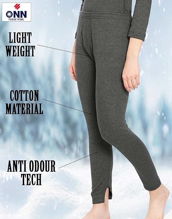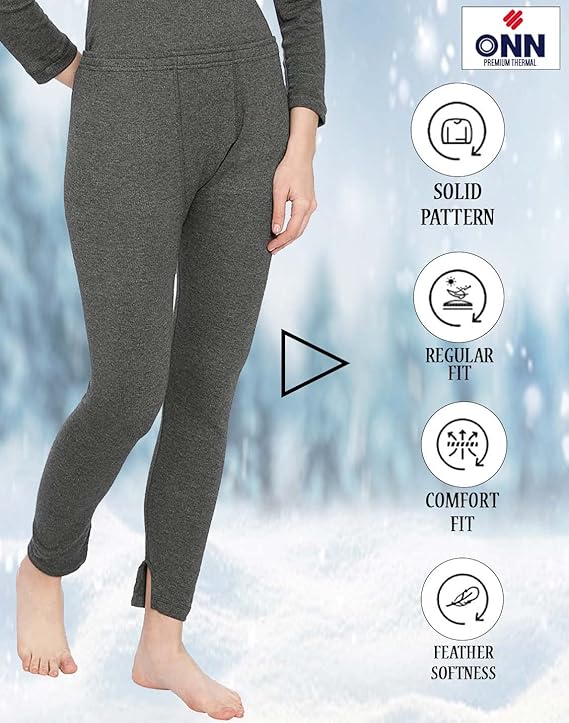 Stay cozy and comfortable with ONN Women's Cotton Solid Thermal Trouser. Designed to provide warmth during colder months, these thermals are crafted from soft and breathable cotton fabric, ensuring gentle comfort against the skin. The solid pattern and snug fit offer a sleek silhouette, making it easy to layer under clothes or wear on its own as lounge wear. The elastic waistband provides a secure, flexible fit without compromising on comfort, making it perfect for all-day wear. Ideal for winter, these thermal lowers offer both functionality and style.