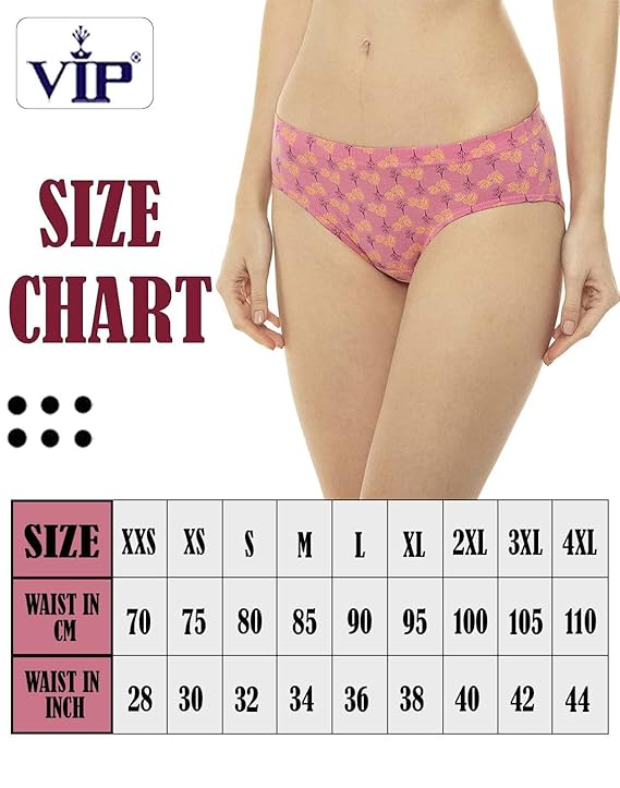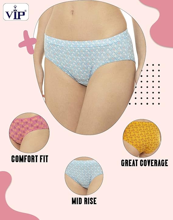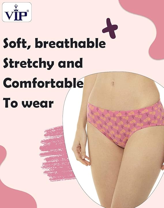 The VIP Feelings Passion Women's Cotton Inner Elastic Hipster Panty offers a blend of comfort, style, and functionality. Made from soft, breathable cotton, these hipster panties are designed for all-day comfort, providing a snug yet gentle fit. The inner elastic waistband ensures a secure and smooth fit without causing irritation, making them perfect for daily wear. Their hipster cut sits comfortably on the hips, providing full coverage and a sleek silhouette. Available in various colors and patterns, these panties combine practicality with a touch of feminine elegance, ideal for women looking for stylish, comfortable undergarments.