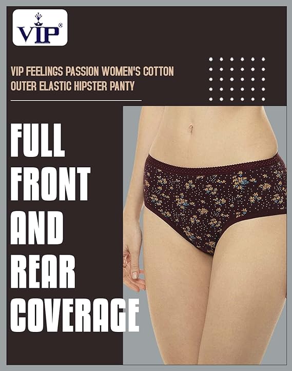 Elevate your everyday essentials with the VIP Feelings Passion Women's Cotton Outer Elastic Hipster Panty (Pack of 6). Designed to provide superior comfort and a flattering fit, these hipster panties are perfect for daily wear. The soft, breathable cotton fabric ensures all-day freshness, while the outer elastic waistband offers a snug fit without digging into your skin.