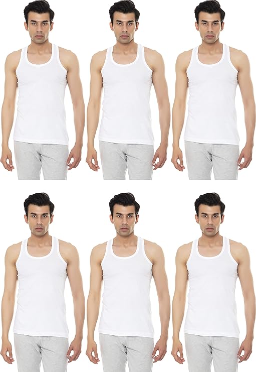 LUX VENUS Men's Round Neck Half Sleeve Cotton Vest Pack of 6